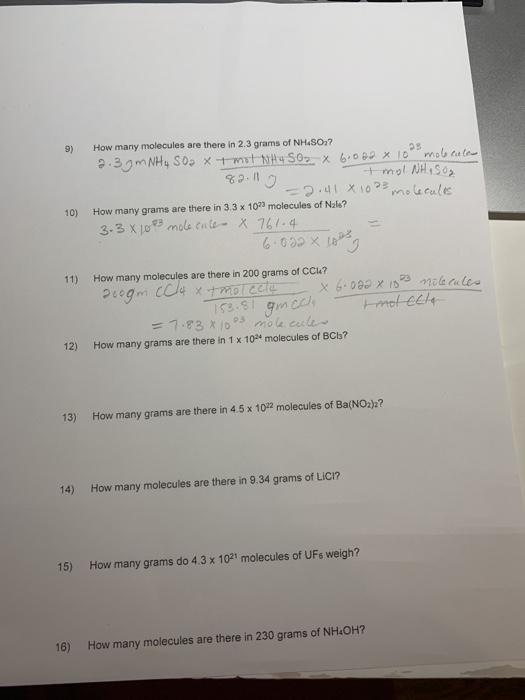 It is given to us that the mass of the sample substance is 23 grams. 9 How many molecules are there in 23 grams of NH4SO2. 13 How many grams are there in 45 x 1022.